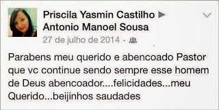 Trata-se de um caso extra conjugal de um pastor do município de Vilhena, em Rondônia, com uma cantora da Assembléia de Deus, a jovem Priscila Yasmin Castilho. Pastor Antônio, que é casado e trabalha como assessor do prefeito de Vilhena, mantinha relações com Priscila, que várias vezes, fazia algumas declarações carinhosas publicamente no perfil de facebook do pastor. Alguns sites dizem que ela chegou a postar as fotos por engano. Antonio Manoel (PSC), é ex-vereador do município A igreja Presbiteriana Renovada de Vilhena esclareceu os fatos, de acordo com Fernando Paulo que é o Pastor presidente da igreja no município, Antonio deixou de ser pastor faz alguns anos, e era apenas membro, seguindo a legislação da igreja Manoel foi desligado da instituição. Mesmo após muito tempo, algumas pessoas ainda tem o costume de chamá-lo de Pastor Antonio.